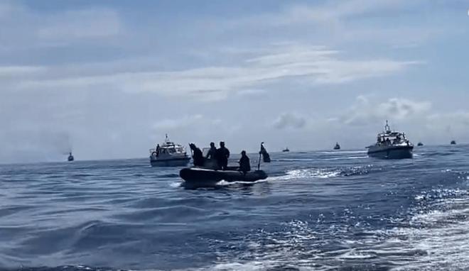 从菲方的牌面就能看出他们的拼搏精神真得是令人感染的!基于一艘从韩国购回的“安东尼奥·卢纳”号的护卫舰的出现在仙宾礁的不远处,其后的美军退役的“拉蒙·阿尔卡斯”号巡逻舰也紧随其后一一展现了中国海军的强大威力。不经意间,黄岩岛一侧就凑出几十艘经过改装的渔船,甲板上都堆了各种直播的设备,明显就是带着一份精心编排的“碰瓷”脚本来的。不料中国海警早就摸透了这一套路,几乎同时就十几个执法船舰,在黄岩岛的外围一一直接将该岛及其周边的水域都“圈”了个严的警戒线,活像一道道的海上长城,令人咋舌!